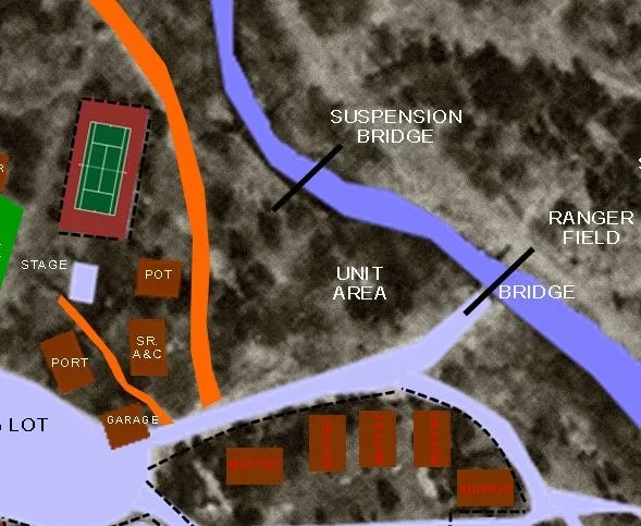 In 1973, the grade ten students from Downsview Secondary School built a suspension bridge across the ravine as part of their workshop experience. The bridge crossed the river from the Pottery Field. It was dismantled around 1980 when it was considered an insurance liability.