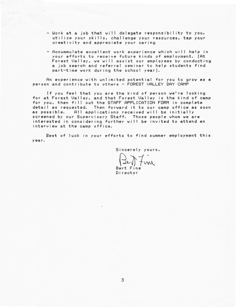 1980s, Documents & Letters, Staff Summer Employment Letter – 1986 February 11, 2025 fvcamp Leave a comment January 6, 2016 Share this: Click to share on Facebook (Opens in new window) Facebook Click to share on X (Opens in new window) X Click to email a link to a friend (Opens in new window) Email Like Loading... Related