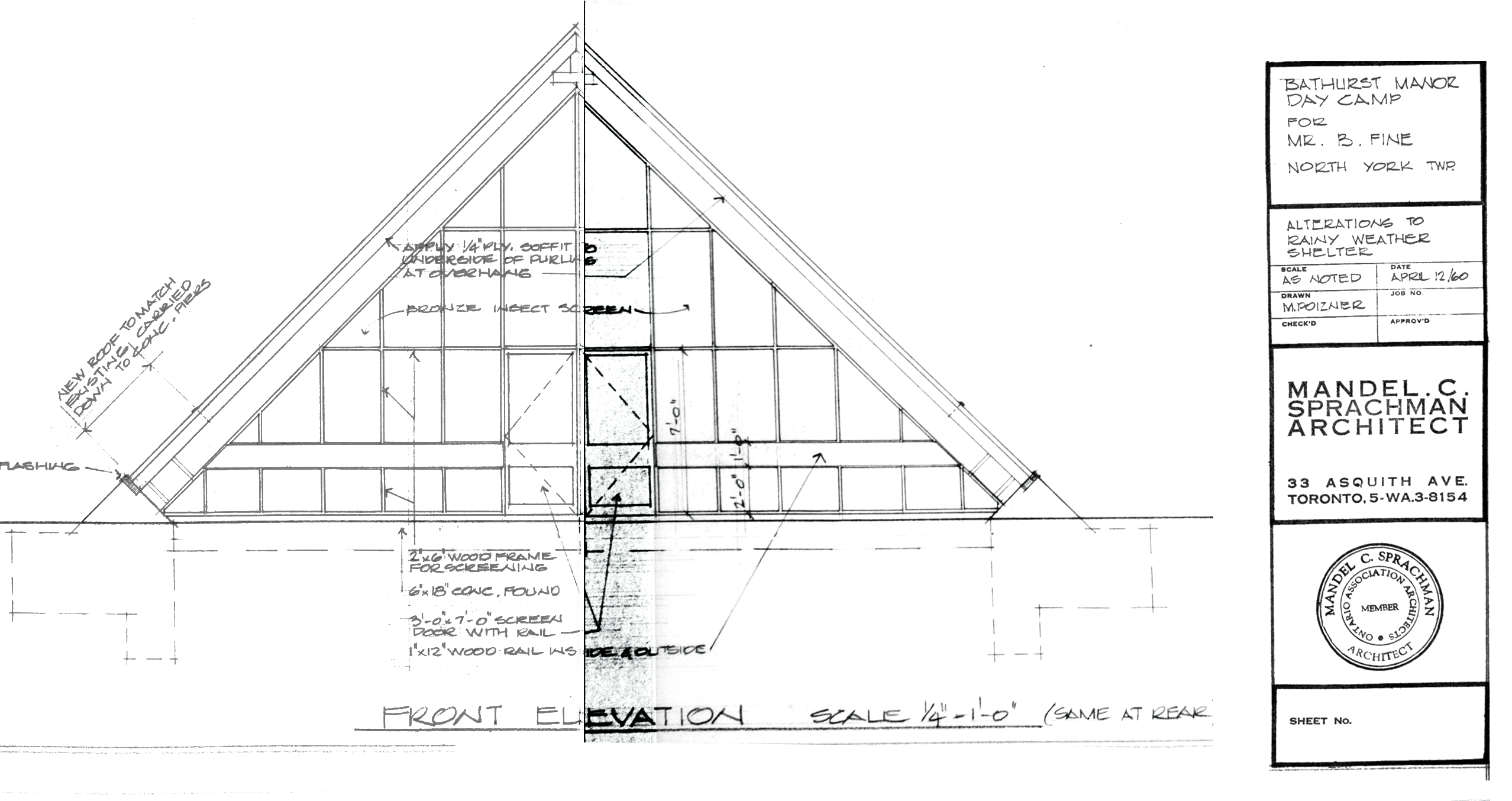 With use, it was determined that the ends should be closed. These changes were made in 1960. The upper windows were clear plastic. The bottom level was screened to allow airflow as shown in this plan: