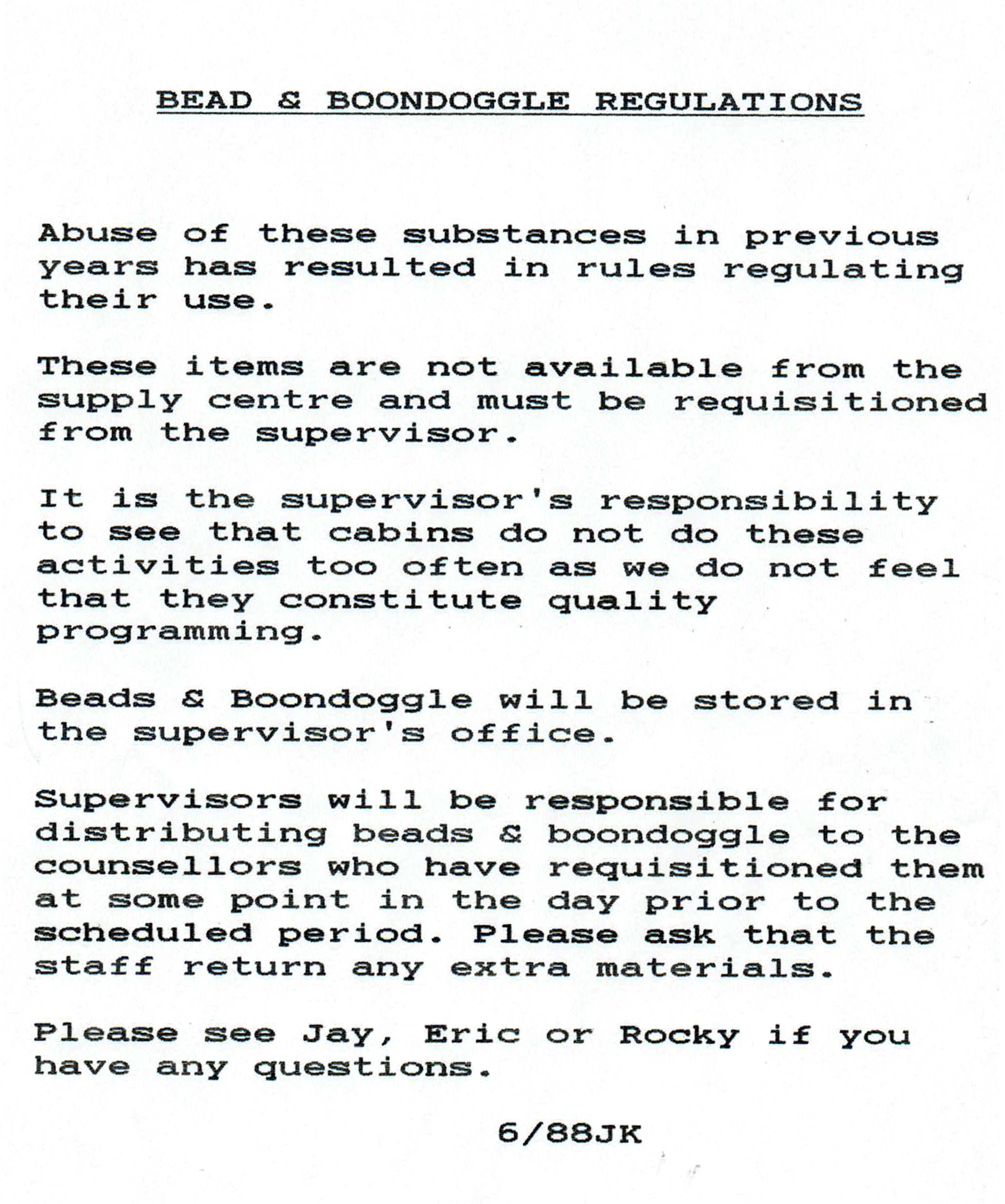 1980s, Activities, Procedures & Routines Beading & Boondoggle! Image March 25, 2025 fvcamp Leave a comment When some cabins began abusing these activities by doing them every day and several times a day, a limit had to be enforced! Share this: Click to share on Facebook (Opens in new window) Facebook Click to share on X (Opens in new window) X Click to email a link to a friend (Opens in new window) Email Related