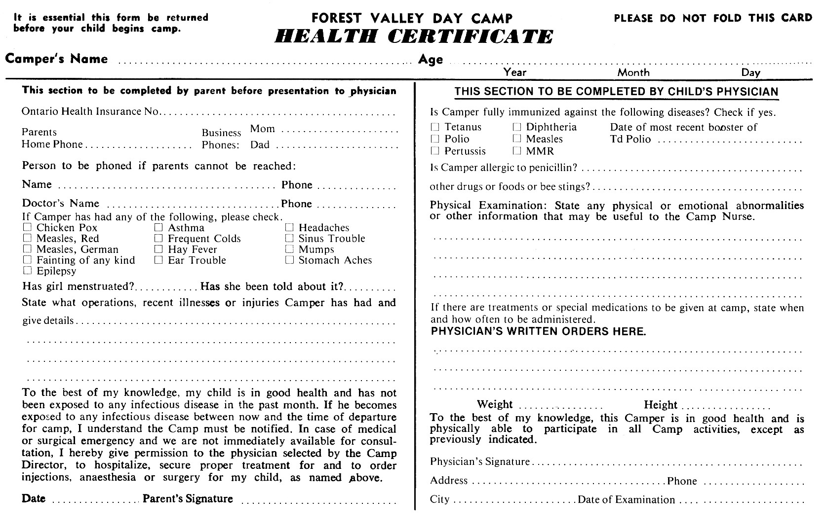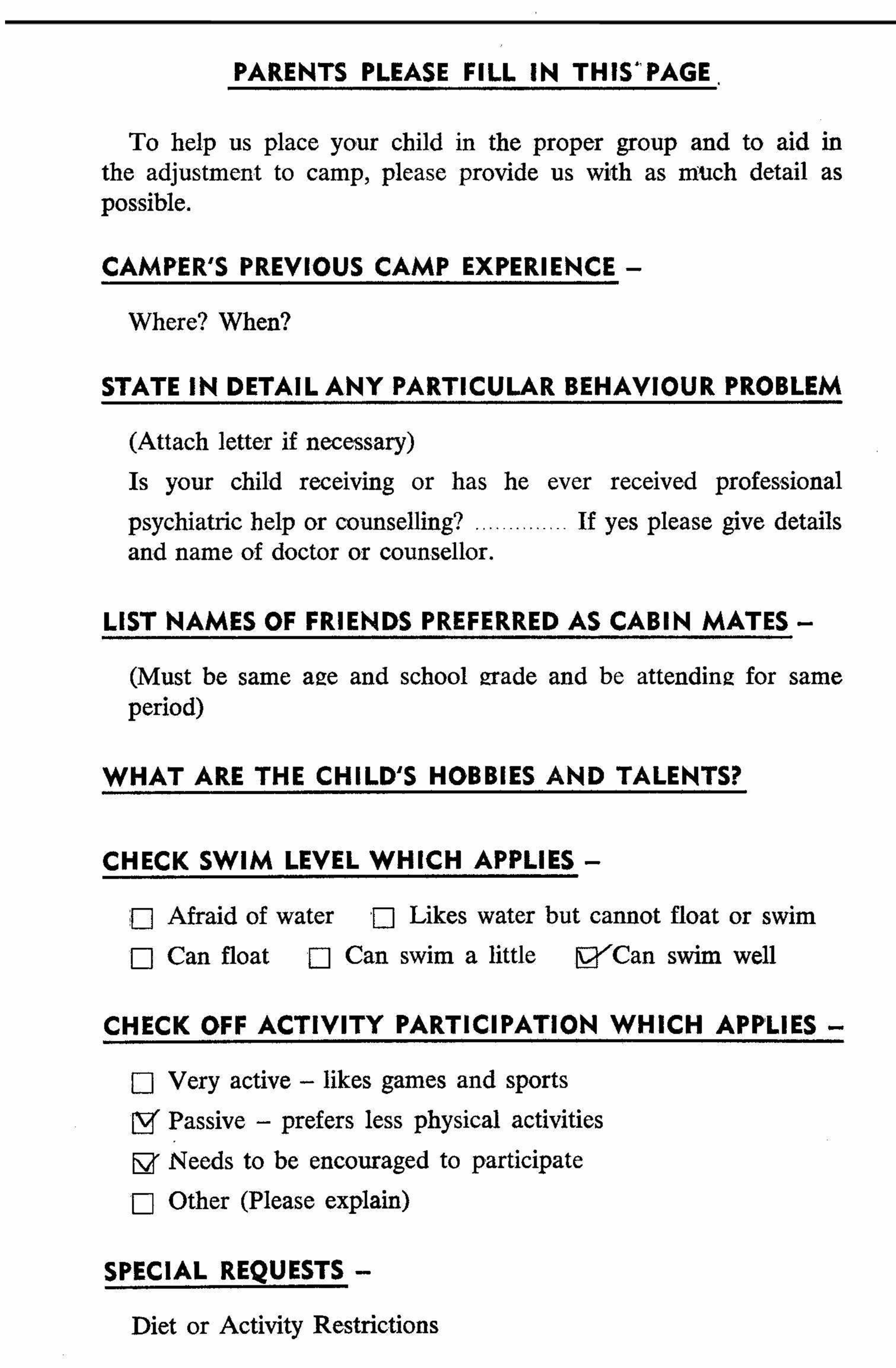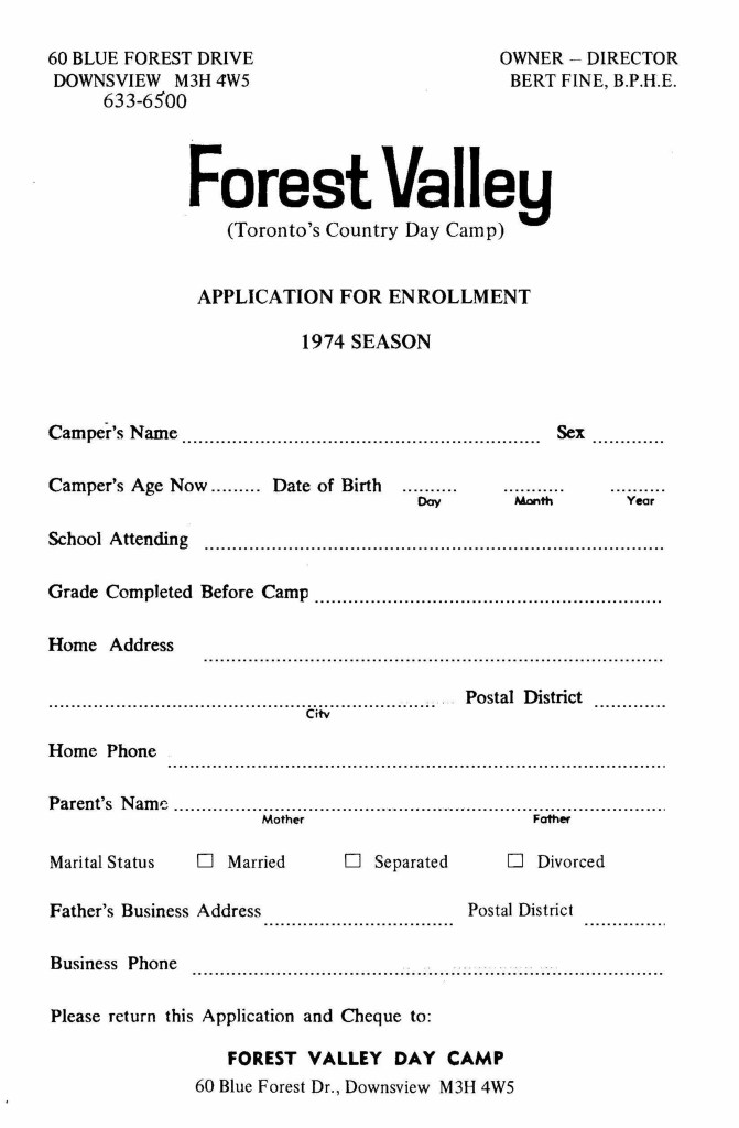 Camp Forms Camper Registration Forms February 10, 2025 fvcamp Leave a comment Application Form – 1974 Camper Progress Report – 1977 Health Form